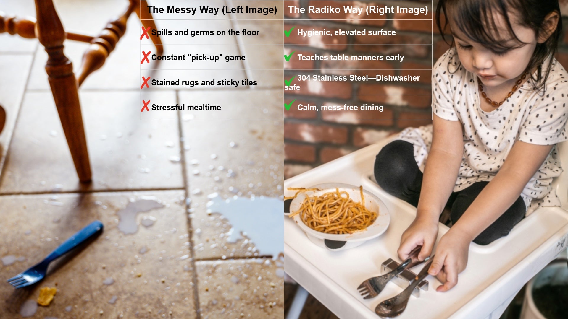 Our kiddo 304 stainless steel rest keep utensils off the floor and germs off the table